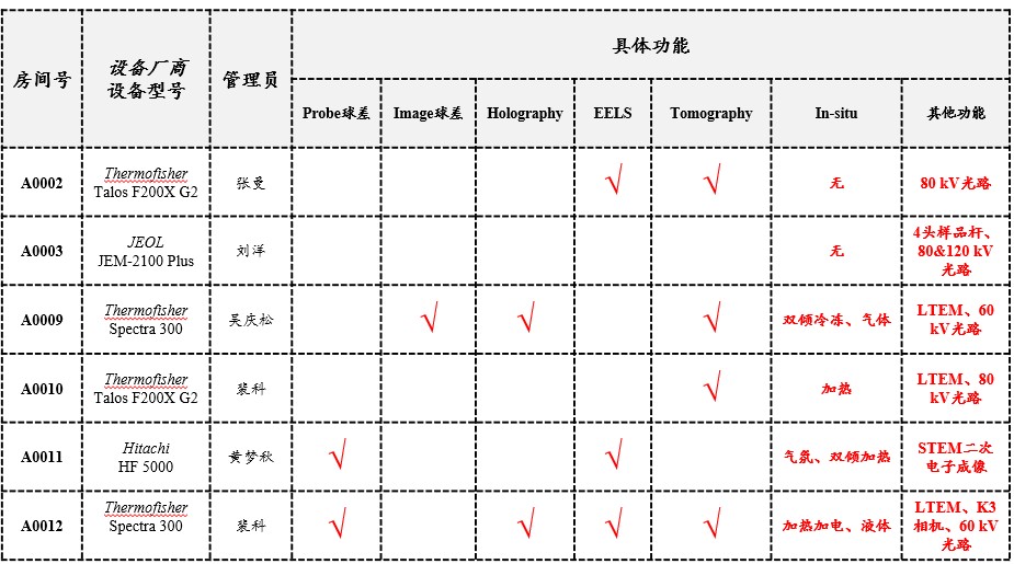 电镜中心透射电镜原位试验与高端功能列表