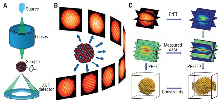 透射电镜三维重构技术原理示意图